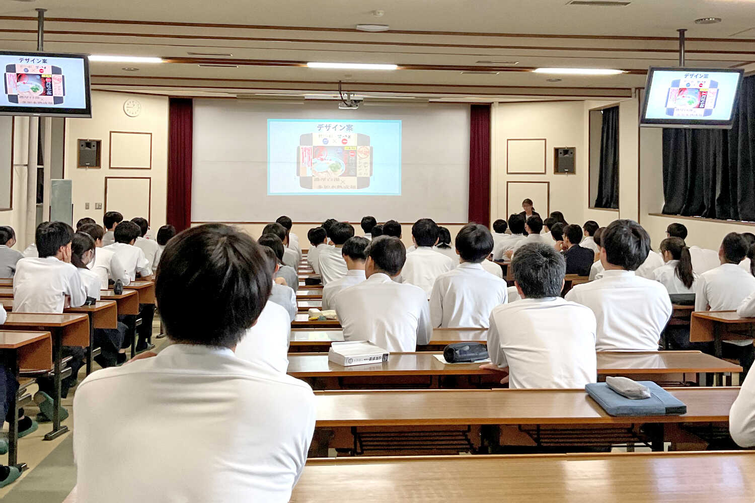 考えたデザインをプレゼン。デザインに込めた想いを発表しました。 その中から選ばれたデザインがパッケージ化されました。